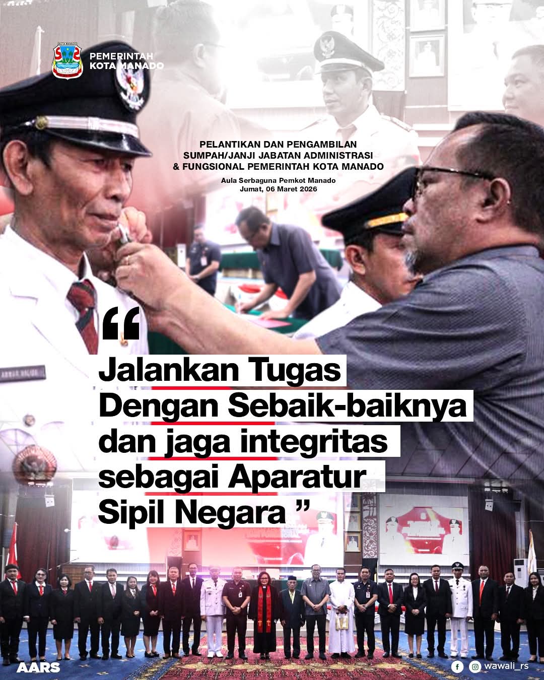 ”Atas nama Pemerintah Kota Manado Bapak Andrei Angouw, saya mengucapkan selamat bertugas kepada seluruh pejabat yang baru dilantik. Kiranya amanah ini dapat dijalankan dengan dedikasi, komitmen, dan semangat pelayanan kepada masyarakat,” tutupnya.