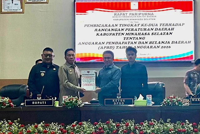 Minsel, MEDIAALTERNATIF.ID – Rancangan Peraturan Daerah Anggaran Pendapatan Belanja Daerah (RAPBD) Kabupaten Minahasa Selatan (Minsel) Tahun Anggaran 2026 telah disahkan menjadi peraturan daerah (perda) lewat Sidang Paripurna tingkat kedua yang digelar pada (29/11/2025).