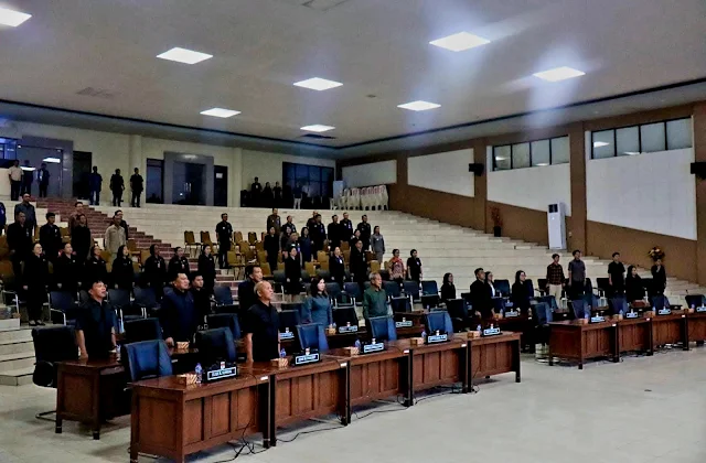 Turut hadir pula Sekretaris Daerah Ibu Glady N. L. Kawatu, SH M.Si. beserta jajaran pemerintah Kabupaten Minsel Asisten 1 Setdakab, asisten 3 Setdakab, Para Kepala Perangkat Daerah, Para Camat dan Para Kepala Bagian Sekretariat Daerah, Para Kepala Bagian Sekretaris DPRD) untuk mendengar penyampaian pendapat akhir tentang Ranperda tentang APBD T.A. 2026.
